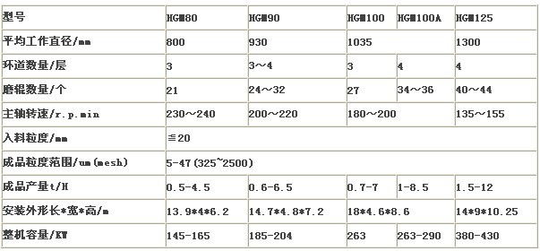石膏磨粉机、石膏粉磨机械的技术参数: